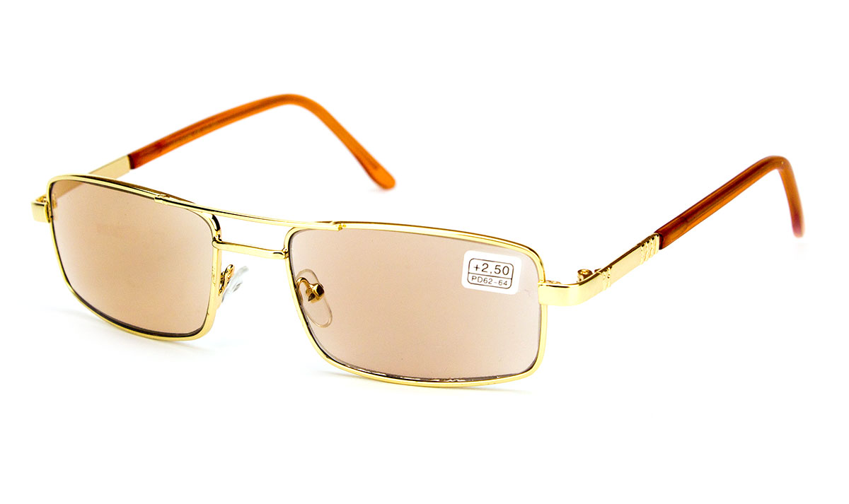 Лінза скло з властивістю "хамелеон" коричневого відтінку, в металевій оправі.