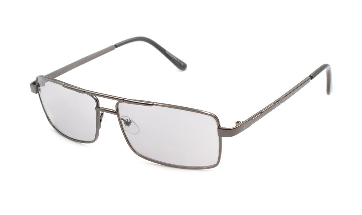 Лінза скло з властивістю "хамелеон" сірого відтінку, в металевій оправі.