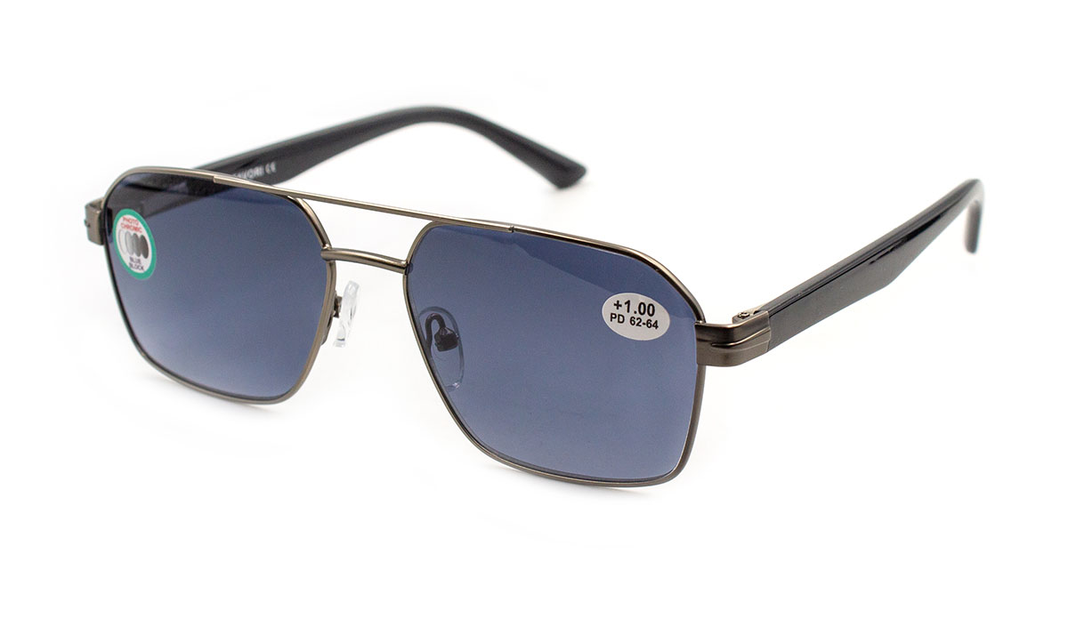 Лінза полімерна з властивістю "хамелеон" сірого відтінку, в металевій оправі.