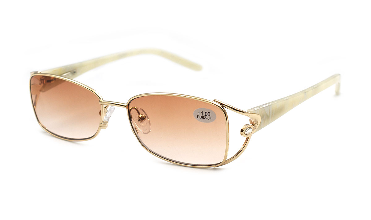 Лінза полімерна, тонована в ободковій металевій оправі.