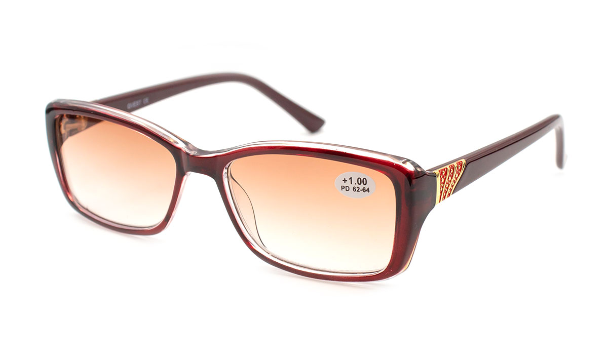 Лінза полімерна, тонована в ободковій пластиковій оправі.