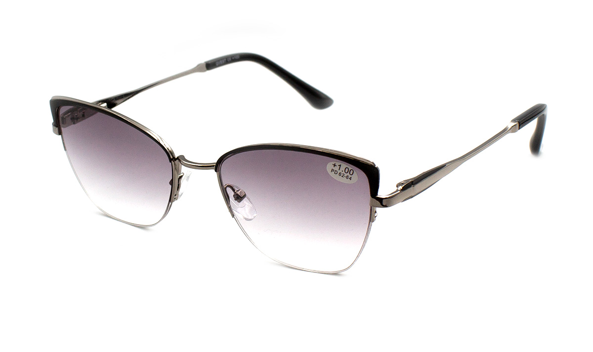 Лінза полімерна, тонована в напівободковій металевій оправі.