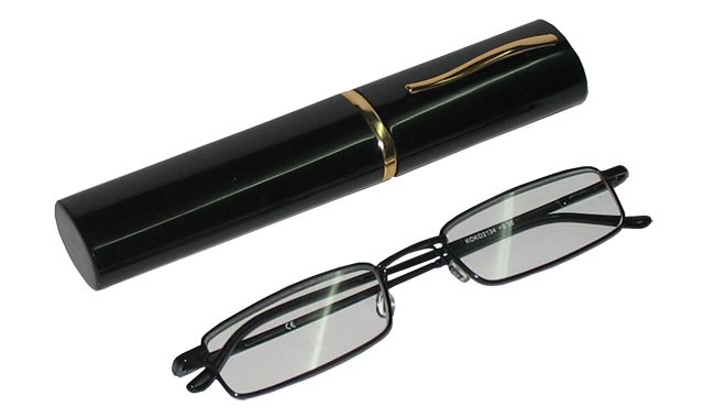 Лінза полімерна, біла в ободковій металевій оправі.