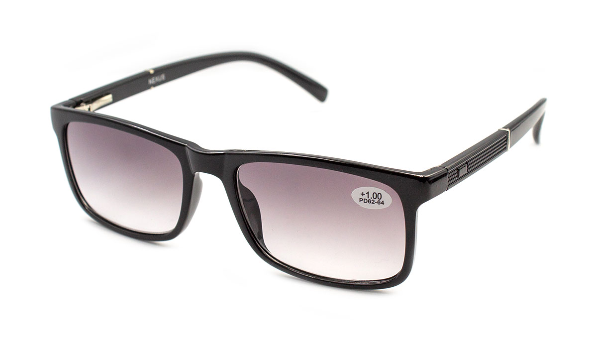 Лінза полімерна, тонована в ободковій пластиковій оправі.