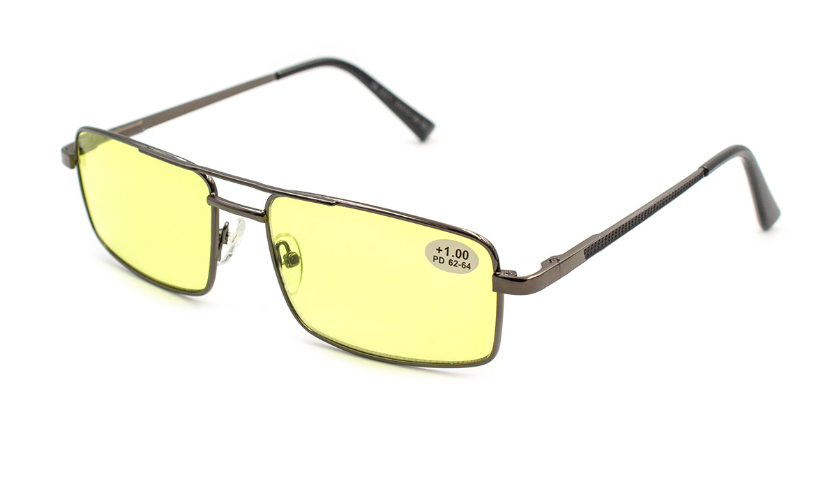 Лінза полімерна, тонована антифара в ободковій металевій оправі з флексами.