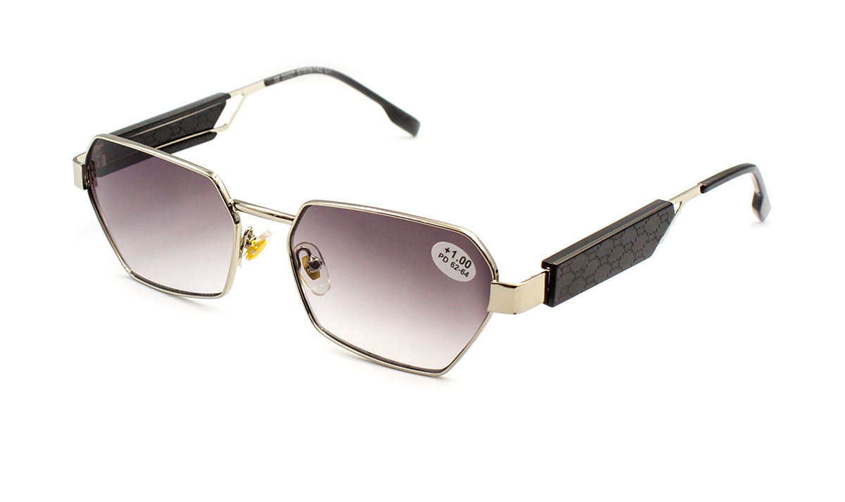 Лінза полімерна, тонована в ободковій металевій оправі.