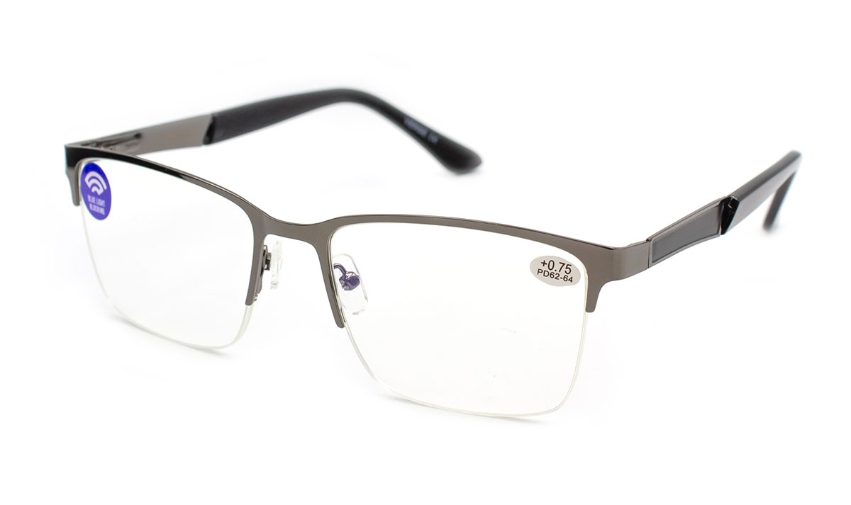 Готові окуляри в металевій напівободковій оправі.