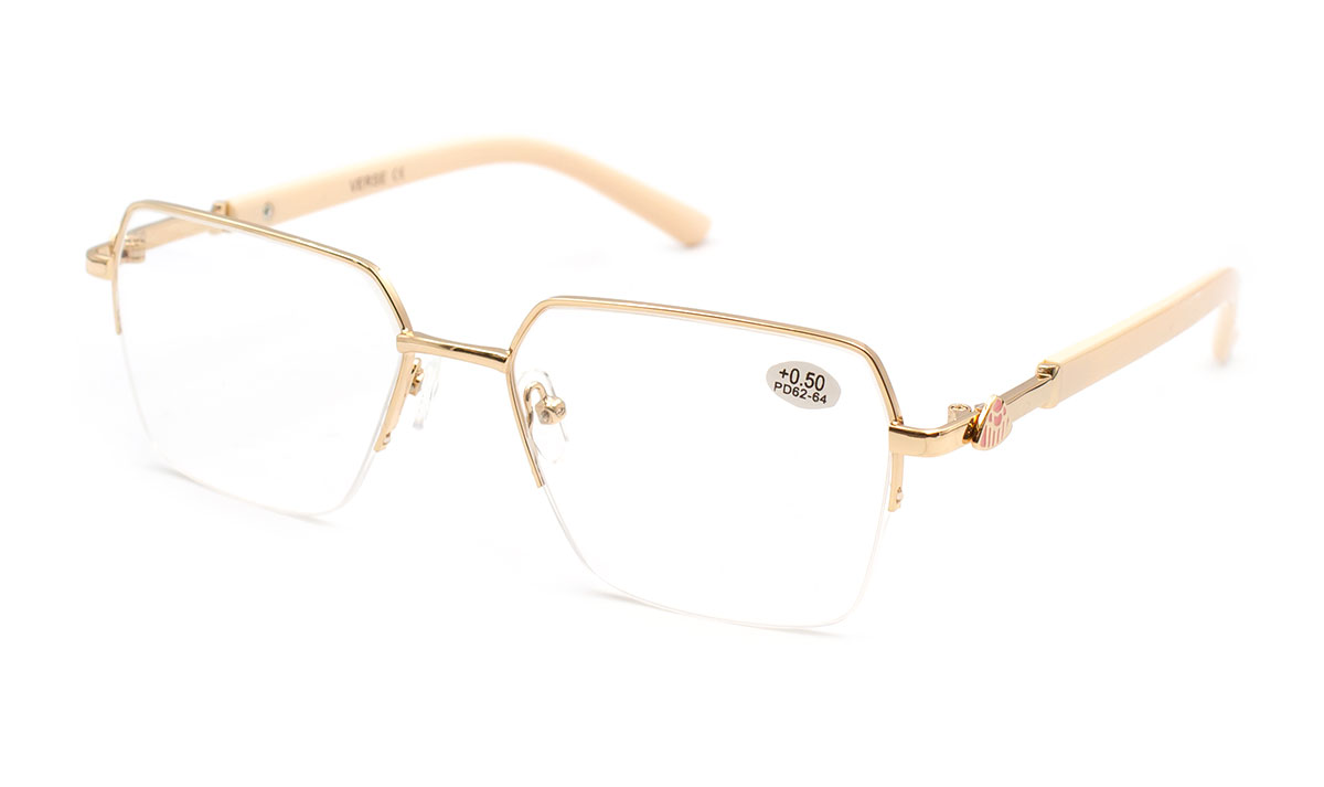 Лінза полімерна, біла у напівободковій металевій оправі.