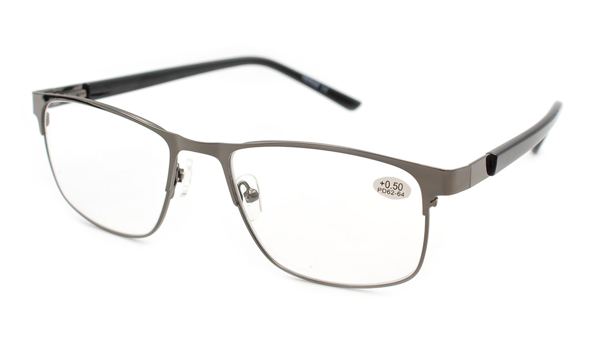 Лінза полімерна, біла у напівободковій металевій оправі.