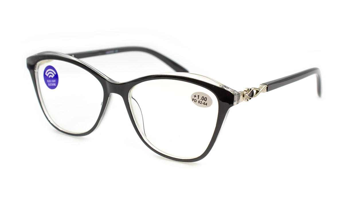Готові окуляри для зору у пластиковій ободковій оправі.