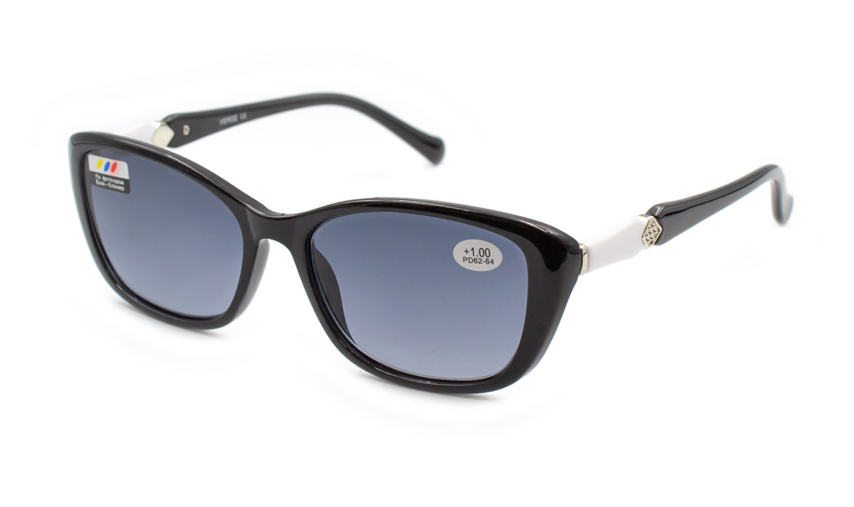 Лінза полімерна з властивістю "хамелеон" сірого відтінку, в пластиковій оправі.