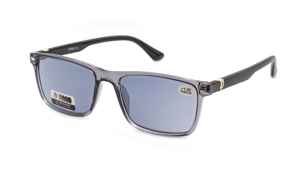 Лінза полімерна з властивістю "хамелеон" сірого відтінку, в пластиковій оправі.
