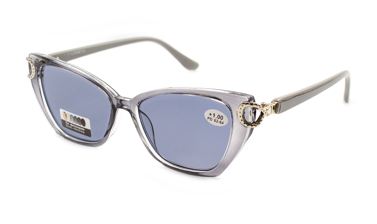 Лінза полімерна з властивістю "хамелеон" сірого відтінку, в пластиковій оправі.