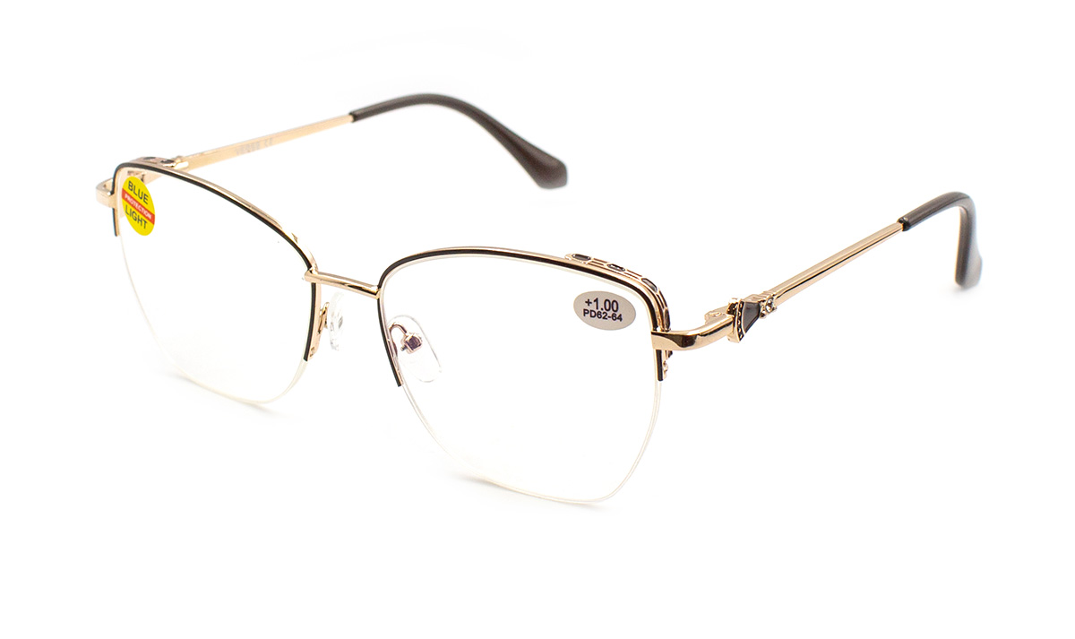 Готові окуляри з діоптріями у металевій напівободковій оправі.