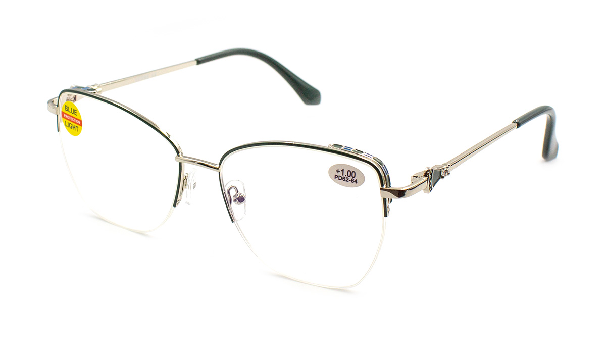Готові окуляри з діоптріями у металевій напівободковій оправі.