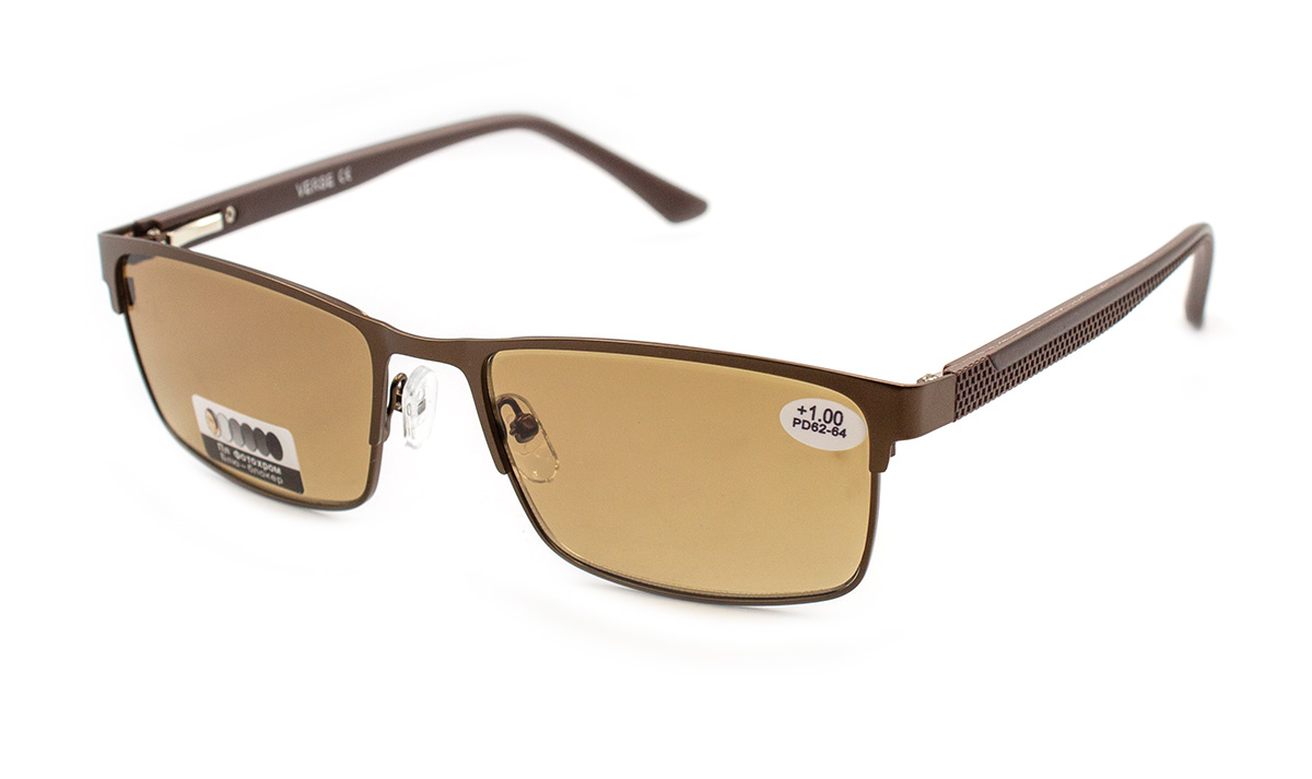Лінза полімерна з властивістю "хамелеон" коричневого відтінку, в металевій оправі.