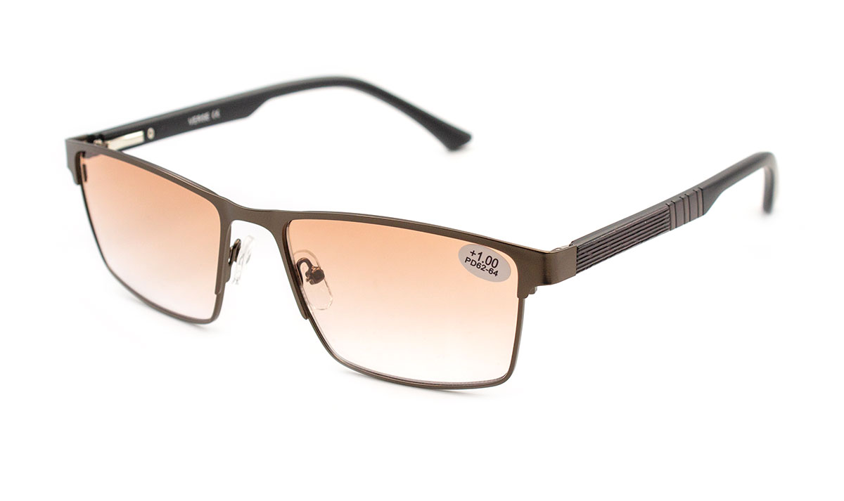 Лінза полімерна, тонована в напівободковій металевій оправі.