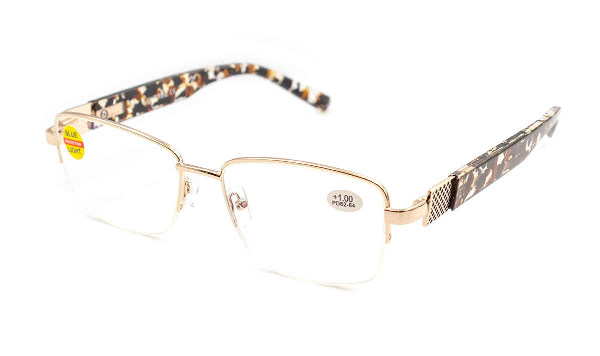 Готові окуляри з діоптріями у металевій напівободковій оправі.